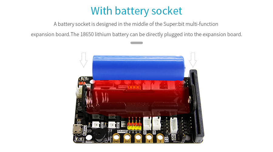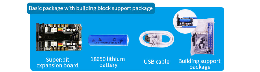 It be designed with bilateral symmetry, onboard micro:bit board socket, 18650 battery socket, USB power supply interface, 3-5v external power interface, 4 programmable RGB lights, buzzer, I2C interface , WIFI camera serial port, all kinds of motor interfaces and so on, which is an expansion board designed for micro:bit. It also can be connected with 2 channel stepper motors, 4 channel DC motors, 8 channel servos, coupled with stable power supply scheme and various protection circuits, this expansion board has a powerful ability to drive motor. We expand 17 pin header IO ports and 10 alligator clip interfaces to support our sensor modules. The WIFI camera serial interface, IIC interface and LEGO holes make it possible for users to expand into more interesting projects. You can build your own shape with the LEGO bricks, connect some electronic devices, and control it by micro:bit programming. It is an excellent choice for your robotic projects based on Micro:bit!