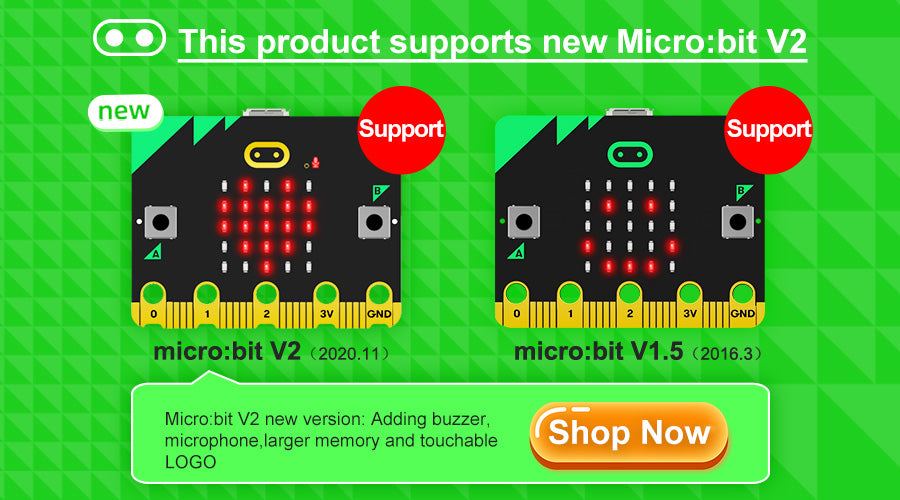 - Onboard content is rich, micro:bit socket, programmable RGB lights, buzzer, and support IIC, serial communication.
